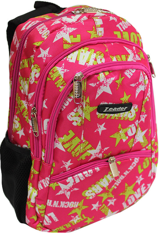 Рюкзак м'який, легкий, закривається на блискавку, має: 1 відділення з внутрішньою кишенею, 1 великий і 1 малу зовнішню кишеню на блискавці і 2 бічних сітчастих кишені.